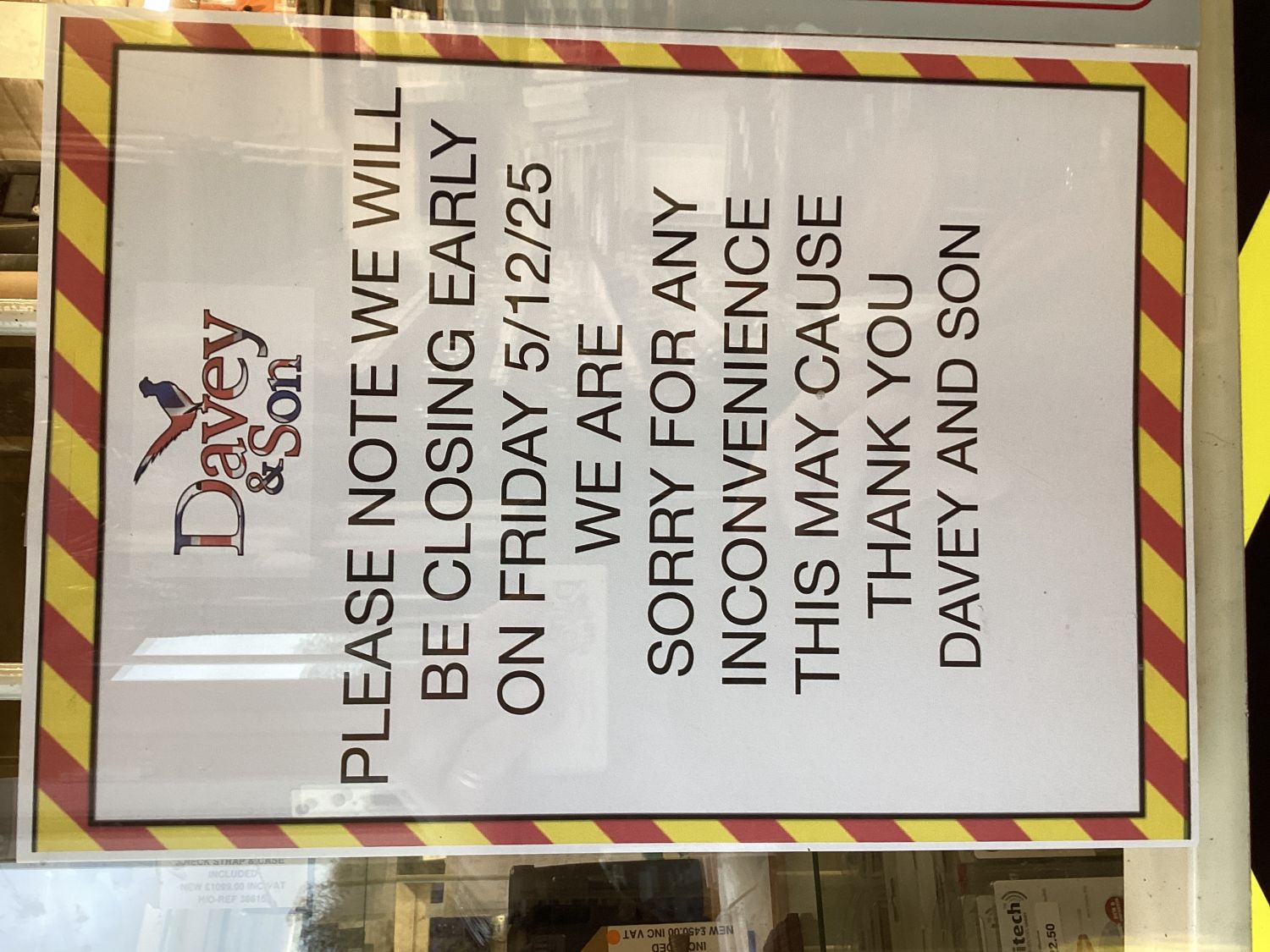 EARLY 5 PM CLOSING ON FRIDAY 5/12/2025.